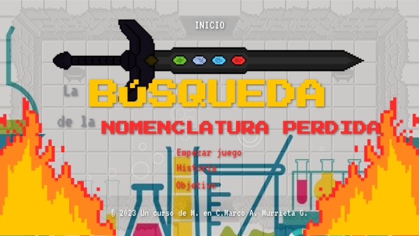 La leyenda cuenta que en un recóndito reino los alquimistas transmutaron una espada que junto al poder de las Gemas Inórganicas (óxidosa, ácidorita, hidróxidota y salesita) podrían encontrar a la nomenclatura inórganica. Reúne las gemas para completar el arma definitiva y vence al magoestro que búsca reprobarte, completa los sellos que se esconden en el reino.