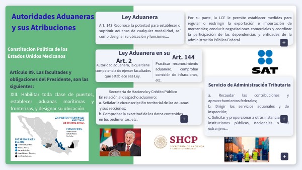 Secretaria de Hacienda y Crédito PúblicoEn relación al despacho aduanero: a. Señalar la circunscripción territorial de las aduanas y sus secciones; b. Comprobar la exactitud de los datos contenidos en los pedimentos, etc.
