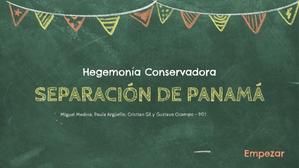 -1819 creación de la gran Colombia. -1880 llego al poder el partido conservador -1886 se presentó una nueva constitución que debilito el poder en los nueve estados soberanos y los paso a ser entidades político-administrativas dependientes del gobierno de Bogotá (una de ellas el ismo de Panamá). -17 de octubre de 1889- 21 de noviembre de 1902 guerra de los 1000 días (conservadores moderados y liberales estaban en contra de un gobierno cada vez más autoritario). -En 1903 estados unidos propone la firma del tratado de Herrán-Hay entre Estados Unidos y Colombia para quedarse con la concesión de Panamá. -11 años después en 1924, Colombia pacto con estados unidos el reconocimiento de Panamá como país y resolvieron los litigios territoriales y fronterizos. -En 1914 estados unidos ofrece una indemnización por 25 millones de dólares. -El movimiento clandestino separatista fue organizado por el político José Agustín Arango y el medico Manuel Amador Guerrero. -El canal de Panamá quedo en manos de Estados Unidos hasta 1999, haciendo que el poder económico, militar y político de estados unidos creciera significativamente.