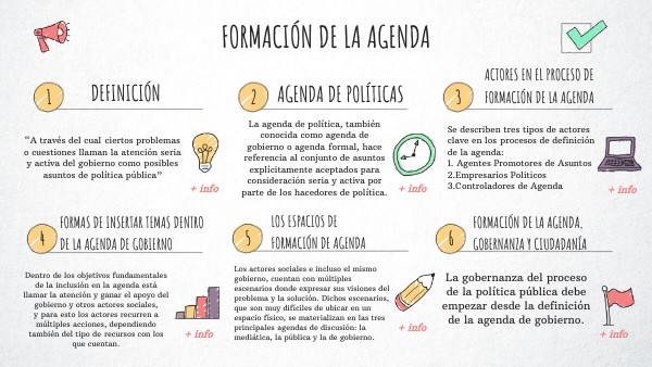 La agenda de política, también conocida como agenda de gobierno o agenda formal, hace referencia al conjunto de asuntos explícitamente aceptados para consideración seria y activa por parte de los hacedores de política.
