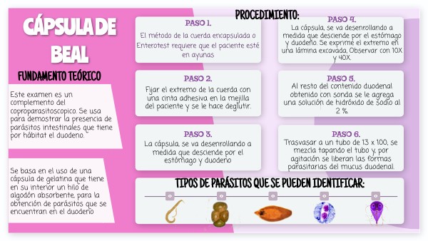 Se basa en el uso de una cápsula de gelatina que tiene en su interior un hilo de algodón absorbente, para la obtención de parásitos que se encuentran en el duodeno