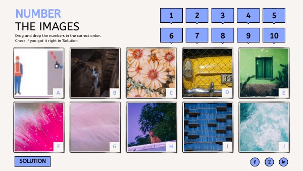 Drag and drop the numbers in the correct order.Check if you got it right in 'Solution'.