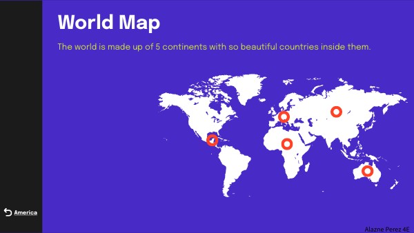 MAP OF THE 5 CONTINENTS WITH 4 COUNTRIES IN SPECIAL