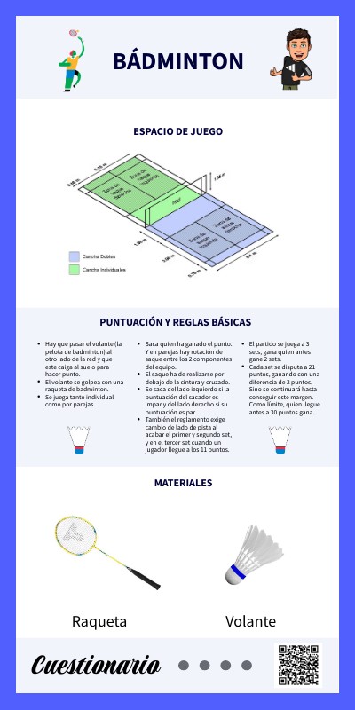 - Hay que pasar el volante (la pelota de badminton) al otro lado de la red y que este caiga al suelo para hacer punto.
