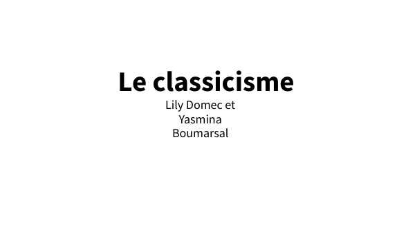 1) Définition 2) Principes et objectifs du mouvement classique 3) Caractéristiques 4) Auteurs importants 5) Résumé