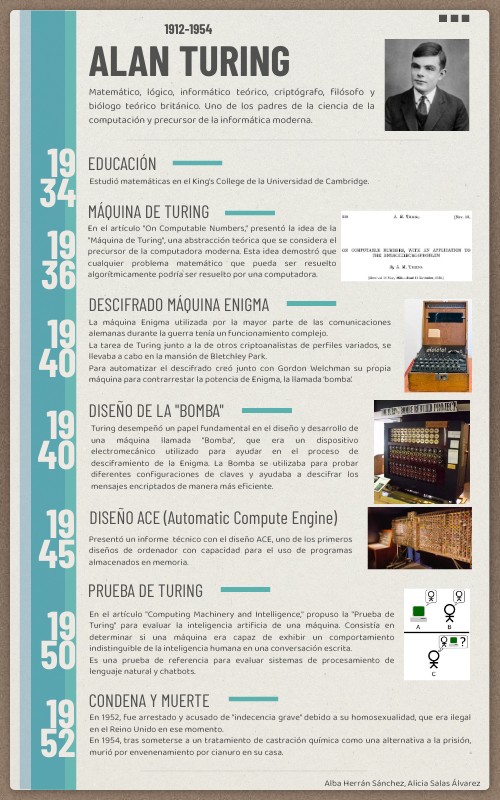 Matemático, lógico, informático teórico, criptógrafo, filósofo y biólogo teórico británico. Uno de los padres de la ciencia de la computación y precursor de la informática moderna.