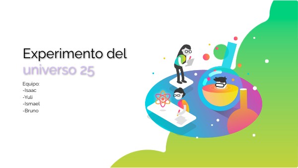 Hola, somos el equipo que elegimos el experimento Universo 25 y hoy vamos a presentar nuestra investigación. El experimento Universo es un ejemplo de lo que puede pasar y llegamos a sobrepoblación del planeta pero con ratones y como un paraíso se convirtió un infierno para los ratones. La materia metodología de investigación se desarrolla en este experimento como investigación científica y social.