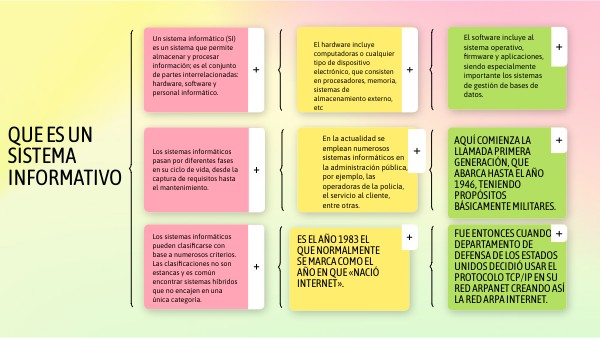 Un sistema informático (SI) es un sistema que permite almacenar y procesar información; es el conjunto de partes interrelacionadas: hardware, software y personal informático.