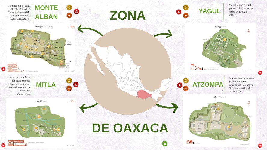 Carmona Macías, Martha, 2004, Oaxaca. Museo Nacional de Antropología. México, México, Conaculta / INAH / Lunwerg. Lugares INAH. (s/f-a). Gob.Mx. Recuperado el 19 de septiembre de 2023, de https://lugares.inah.gob.mx/en/zonas-arqueologicas/zonas/estructuras/7253-200-grupo-del-sur.html?lugar_id=1764 Lugares INAH. (s/f-b). Gob.mx. Recuperado el 19 de septiembre de 2023, de https://lugares.inah.gob.mx/es/zonas-arqueologicas/zonas/estructuras/7130-200-grupo-del-arroyo.html?lugar_id=1764 Mitla Zona Arqueológica - Oaxaca Mio. (s/f). Oaxaca-mio.com. Recuperado el 19 de septiembre de 2023, de https://www.oaxaca-mio.com/atrac_turisticos/mitla.htm Lugares INAH. (s/f-c). Gob.Mx. Recuperado el 19 de septiembre de 2023, de https://lugares.inah.gob.mx/en/zonas-arqueologicas/zonas/estructuras/7325-215-palacio-de-los-seis-patios.html?lugar_id=1766 Atzompa. (s/f). Secretaría de Cultura/Sistema de Información Cultural. Recuperado el 19 de septiembre de 2023, de https://sic.cultura.gob.mx/ficha.php?table=zona_arqueologica&table_id=197 Yagul, Oaxaca. (2016, julio 22). Arqueología Mexicana. https://arqueologiamexicana.mx/mexico-antiguo/yagul-oaxaca Mitla. (s/f). Secretaría de Cultura/Sistema de Información Cultural. Recuperado el 19 de septiembre de 2023, de http://sic.gob.mx/ficha.php?table=zona_arqueologica&table_id=75 Monte Albán. (s. f.). Mediateca - Instituto Nacional de Antropología e Historia. https://mediateca.inah.gob.mx/islandora_74/islandora/object/sitioprehispanico%3A1432