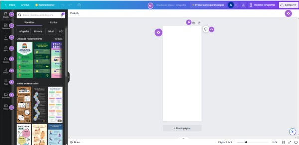 Hacer clic en diseño nos abrirá un buscador de plantillas prediseñadas, hacer clic en alguna aplicará el diseño a nuestro proyecto.