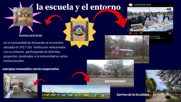 en la comunidad de Anisacate se encuentra ubicada el I.P.E.T 331 institucion relacionada con su entorno .participando en distintos proyectos ,mostrados a la comunidad en actos institucionales .