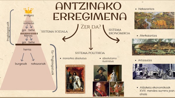 Antzinako erregimenaren gizartea hiru estamentuetan banatuta zegoen: noblezia, kleroa eta herria. Hauek, bi taldetan banatuta zeuden: pribilegiatuetan eta ez pribilegiatuetan. Pertsona baten jaiotzaren arabera estamentu batena ala bestearena zen. Estamentu batetik bestera pasatzera oso zaila zen; normalean zure gurasoak nekazariak bazinen zu ere.