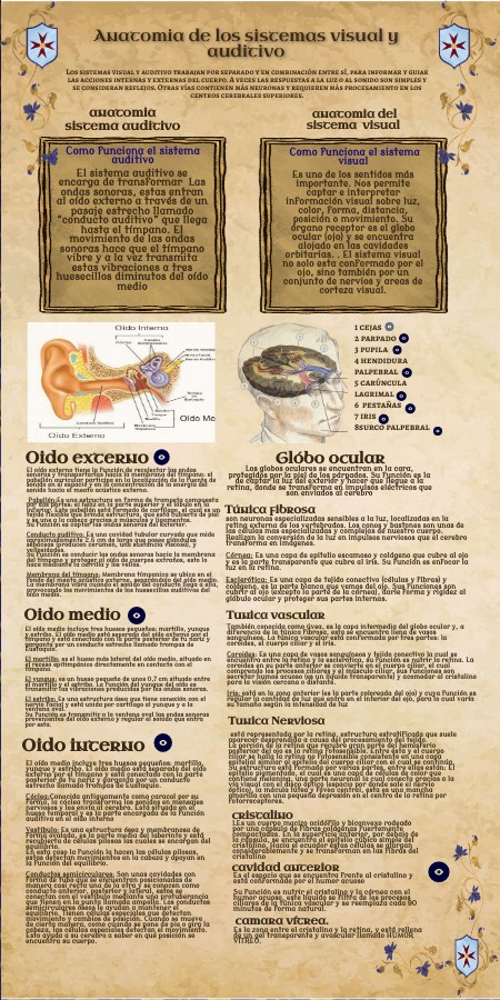 Los sistemas visual y auditivo trabajan por separado y en combinación entre sí, para informar y guiar las acciones internas y externas del cuerpo. A veces las respuestas a la luz o al sonido son simples y se consideran reflejos. Otras vías contienen más neuronas y requieren más procesamiento en los centros cerebrales superiores.