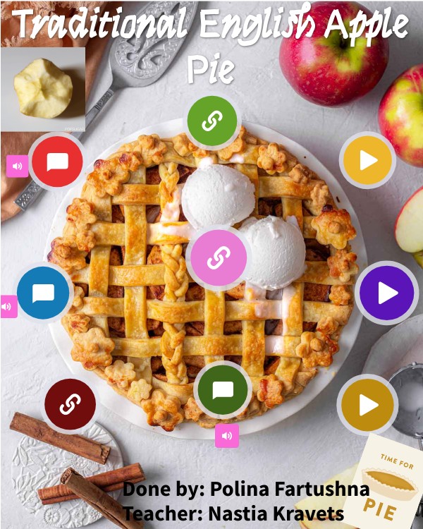 This material is about traditional English meal an apple pie. It can be used by chidren and adults 13-21 ages.