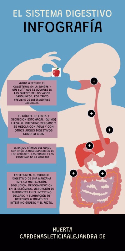 En resumen, el proceso digestivo de una manzana implica masticación, deglución, descomposición en el estómago, absorción de nutrientes en el intestino delgado y eliminación de desechos a través del intestino grueso y el recto.