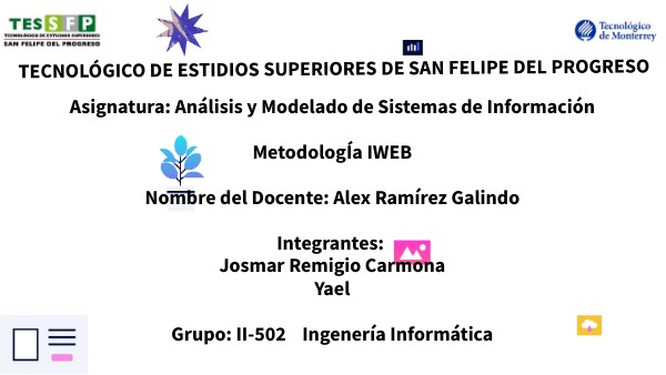 Asignatura: Análisis y Modelado de Sistemas de Información MetodologÍa IWEB Nombre del Docente: Alex Ramírez Galindo Integrantes: Josmar Remigio Carmona Yael Grupo: II-502 Ingenería Informática