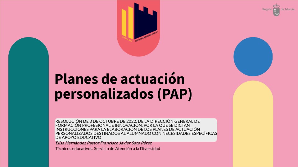 RESOLUCIÓN DE 3 DE OCTUBRE DE 2022, DE LA DIRECCIÓN GENERAL DE FORMACIÓN PROFESIONAL E INNOVACIÓN, POR LA QUE SE DICTAN INSTRUCCIONES PARA LA ELABORACIÓN DE LOS PLANES DE ACTUACIÓN PERSONALIZADOS DESTINADOS AL ALUMNADO CON NECESIDADES ESPECÍFICAS DE APOYO EDUCATIVO Elisa Hernández Pastor Francisco Javier Soto Pérez Técnicos educativos. Servicio de Atención a la Diversidad