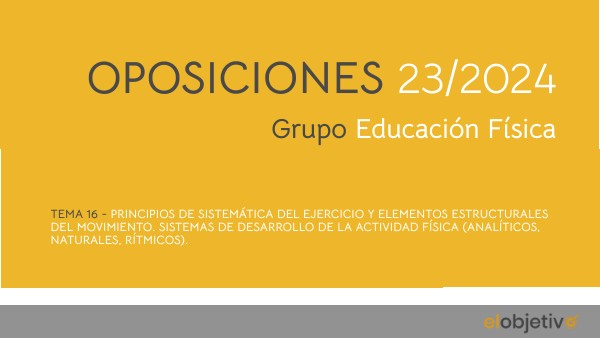 TEMA 16 - PRINCIPIOS DE SISTEMÁTICA DEL EJERCICIO Y ELEMENTOS ESTRUCTURALES DEL MOVIMIENTO. SISTEMAS DE DESARROLLO DE LA ACTIVIDAD FÍSICA (ANALÍTICOS, NATURALES, RÍTMICOS).