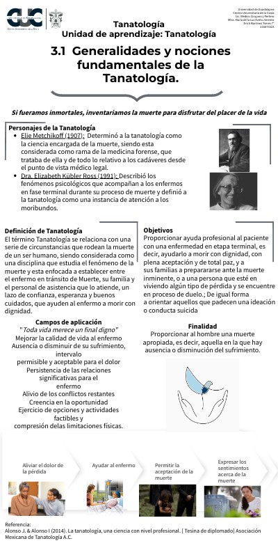 Referencia: Alonso J. & Alonso I (2014). La tanatología, una ciencia con nivel profesional. [ Tesina de diplomado] Asociación Mexicana de Tanatología A.C.