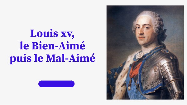 Louis XV naît à Versailles le 15 février 1710 et devient roi à 5 ans le 1er septembre 1715 (succédant à Louis XIV, son arrière-grand-père) ; il meurt également à Versailles le 10 mai 1774, après un long règne de 59 ans, dont seulement 31 (de fin janvier 17431 à sa mort) de règne personnel. Louis XV est d'abord surnommé le Bien-Aimé quand, en 1744, tombé gravement malade à Metz, sa guérison soudaine suscite la joie de tout son peuple. Mais dans la deuxième moitié du règne, cette popularité ne résiste pas aux : conflits internes au royaume.