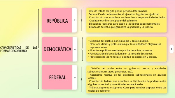 Este cuadro sinóptico proporciona una descripción concisa de las características clave de las formas de gobierno: República, Democrática y Federal. Cada forma de gobierno tiene sus propias características distintivas que influyen en la organización y el funcionamiento del sistema político de un país. Asley Jesus Zarate Chiñas