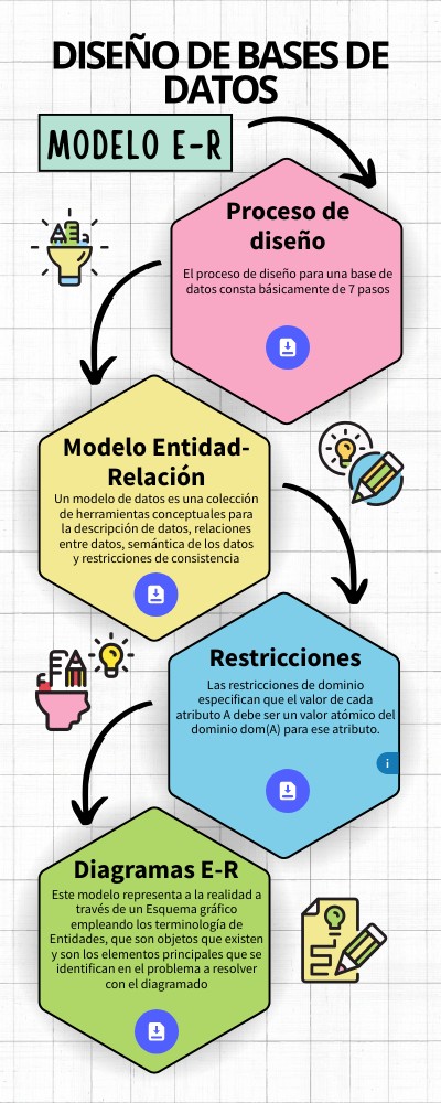 El proceso de diseño para una base de datos consta básicamente de 7 pasos