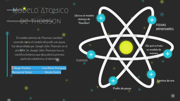 El modelo atómico de Thomson, también conocido como el modelo del pudín con pasas, fue desarrollado por Joseph John Thomson en el año 1904. Sir Joseph John Thomson fue un científico británico que descubrió la primera partícula subatómica, el electrón.