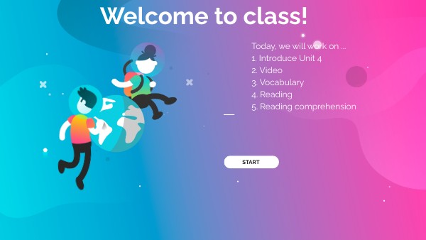Today, we will work on ...1. Introduce Unit 4 2. Video 3. Vocabulary 4. Reading 5. Reading comprehension