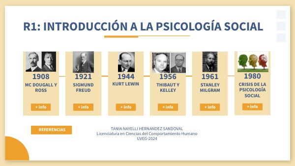 Carrillo A. (2 de enero de 2019). Teoría de intercambio social: qué es y cuáles son sus autores. Psicología y Mente. Recuperado el 23 de noviembre de 2022 de https://psicologiaymente.com/social/teoria-de-intercambio-social Castro I, Herráiz N, Martínez M, Picazo M, Prieto M, Rodríguez S. (2010). Investigación Acción. Recuperado el 23 de noviembre de 2022 de https://files.cercomp.ufg.br/weby/up/97/o/IA._Madrid.pdf Grippo J. (8 de septiembre de 2022). La psicología de las masas y el análisis del yo. Psiconotas. Recuperado el 23 de noviembre de 2022 de https://www.psiconotas.com/la-psicologia-de-las-masas-y-analisis-del-yo.html Milagros V. (2022). Lección 1. ¿Qué es la Psicología social? En Psicología social. Universidad Virtual del Estado de Guanajuato. Recuperado el 24 de noviembre de 2022 de https://avalicmod19c.uveg.edu.mx/course/view.php?id=468&mainsection=2&chall=5 Vázquez R. (23 de noviembre de 2015). El Experimento de Milgram: el peligro de la obediencia a la autoridad. Psicología y Mente. Recuperado el 23 de noviembre de 2022 de https://psicologiaymente.com/social/experimento-milgram-crimenes-obediencia-autoridad