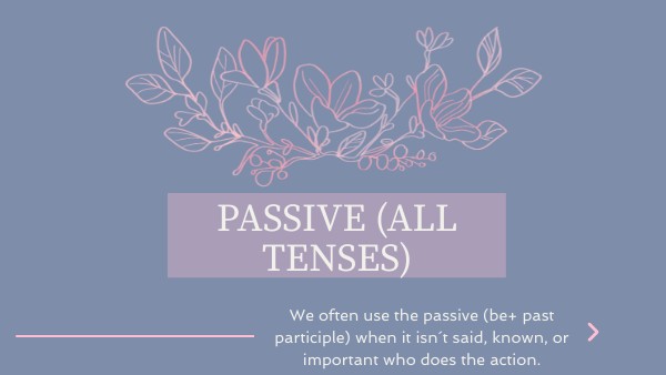 ACTIVEI had laid the table.PASSIVE The table had been laid (by me.)