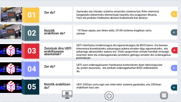UEFI zure ordenagailuaren Hardwarea kontrolatzen duen teknologia bat da, pizten duzunean, eta zenbait ordenagailuetan BIOS ordezkatzen du.