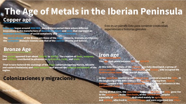 In the Bronze Age and the Iron Age, Indo-European migrations had a big repercussion on the peninsula mainly in the center and north of it. These will give rise to future cultures in the Iron Age