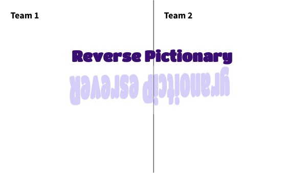 The class divides into two teams and each team takes turns designating a single artist. The artists need to close their eyes with their backs to the board while two words are shown. The words dissapear and the rest of their team will give them instructions what to draw. The first artist to guess what they are drawing wins the round.