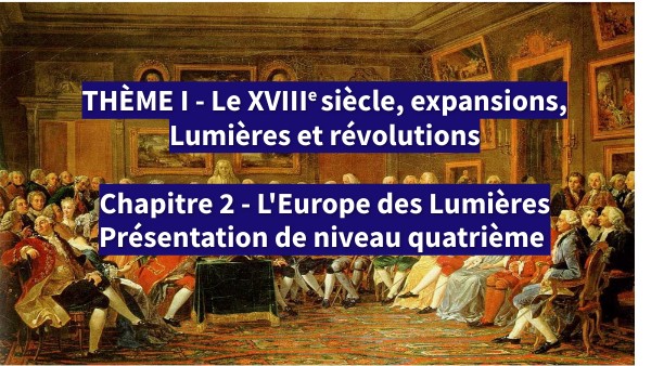 THÈME I - Le XVIIIe siècle, expansions, Lumières et révolutions Chapitre 2 - L'Europe des Lumières Présentation de niveau quatrième