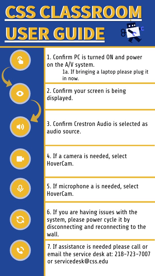 7. If assistance is needed please call or email the service desk at: 218-723-7007 or servicedesk@css.edu
