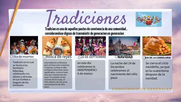 Tradicion es una de aquellas pautas de convivencia de una comunidad , considerandose dignas de transmiotir de generacion en generacion