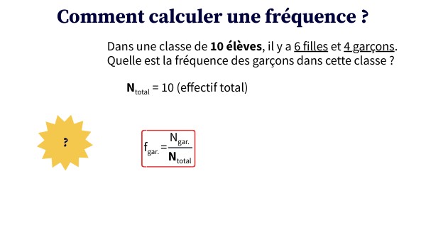 Dans une classe de 10 élèves, il y a 6 filles et 4 garçons. Quelle est la fréquence des garçons dans cette classe ?