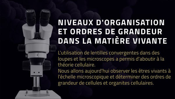 L'utilisation de lentilles convergentes dans des loupes et les microscopes a permis d'aboutir à la théorie cellulaire. Nous allons aujourd'hui observer les êtres vivants à l'échelle microscopique et déterminer des ordres de grandeur de cellules et organites cellulaires.