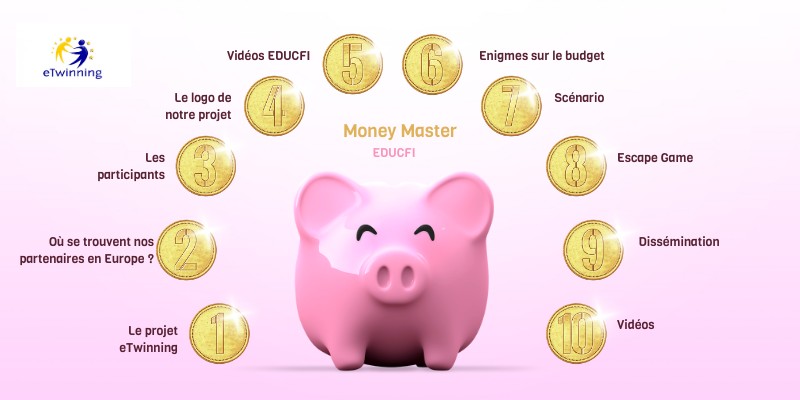 Au plus tard, le 29 septembre 2023. • Inscrire les classes de son établissement pour le concours via la page dédiée dans le twinspace. • Remarque : Chaque établissement peut inscrire plusieurs classes Jusqu'au 1er décembre 2023. • Publier toutes les réalisations sur un padlet (un par classe) • Créer une sous page établissement puis des sous pages à raison d'une par classe indiquant le lien vers le ou les padlet(s). Entre le 1er décembre et le 8 décembre 2023. • Chaque établissement sélectionne 3 logos par classe selon ses propres critères et son propre règlement (élèves, enseignants, parents, ... ) • Publier les logos sélectionnés pour chaque classe via les pages dédiées (un padlet unique reprenant les meilleurs logos de l'établissement ( 3 par classe) Le 9 décembre 2023 • Une page (padlet ou digipad) est créée publiant les meilleurs logos de chaque établissement .Les logos sont anonymisés (pas de nom d'établissement ni de pays). • Entre le 15 décembre et le 22 décembre 2023. • Un et un seul professeur ambassadeur du projet dans son établissement vote en son âme et conscience . Que l'établissement ait participé ou non au concours de logo. Il choisit 3 logos . Il les classe et leur attribue des points : 3 pour le meilleur, 2 pour le 2ème et 3 pour le dernier. Le 23 décembre 2023 • les points sont comptés. • Le logo ayant obtenu le plus de points devient le logo du projet "Money Master". Le 8 janvier 2023 • Les résultats sont publiés.