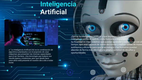 ¿Qué es la inteligencia artificial y que importancia tiene? Inteligencia artificial: qué es, cómo funciona e importancia ... Su finalidad es crear sistemas que puedan aprender y evolucionar con el tiempo; que sean capaces de tomar decisiones y realizar tareas de manera autónoma y eficiente para que la tecnología y los humanos puedan abordar de forma más efectiva una amplia variedad de desafíos y oportunidades