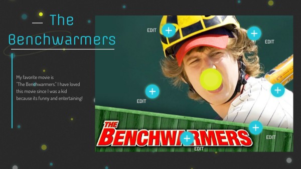 My favorite movie is "The Benchwarmers." I have loved this movie since I was a kid because its funny and entertaining!