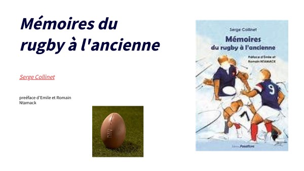Dans le livre ,Collinet racconte comment le rugby a changé avec le temp il parle de une rugby "a l'ancienne" plus amateur
