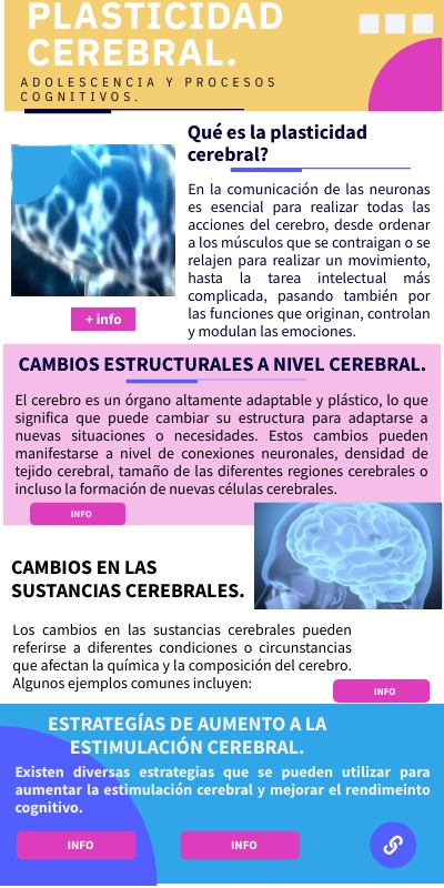 - El segundo tipo de plasticidad es la que se le conoce como estructural. Esta se refiere a los mecanismos que existen en nuestro cerebro que nos permiten ser flexibles, reforzar las redes que ya existen y formar nuevas redes neuronales e incluso eliminarlas.