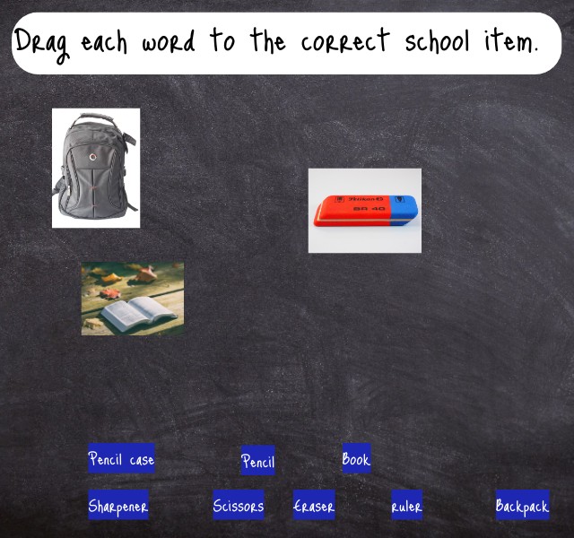 Drag each word to the correct school item.
