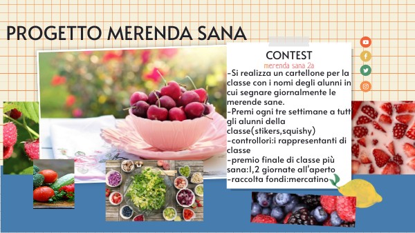 -Si realizza un cartellone per la classe con i nomi degli alunni in cui segnare giornalmente le merende sane.-Premi ogni tre settimane a tutti gli alunni della classe(stikers,squishy)-controllori:i rappresentanti di classe-premio finale di classe più sana:1,2 giornate all'aperto-raccolta fondi:mercatino