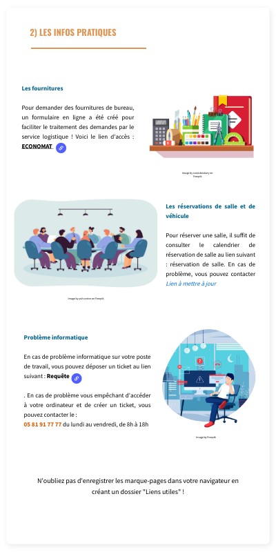 Les fournituresPour demander des fournitures de bureau, un formulaire en ligne a été créé pour faciliter le traitement des demandes par le service logistique ! Voici le lien d'accès : ECONOMAT