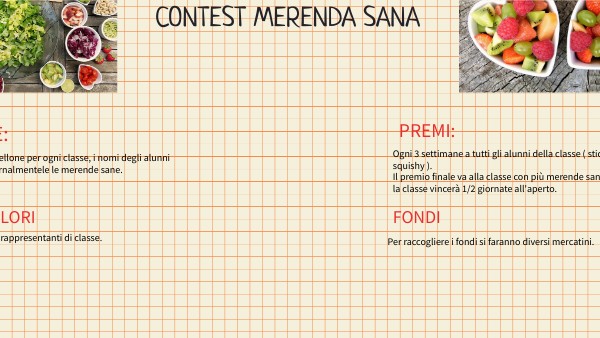 Ogni 3 settimane a tutti gli alunni della classe ( stickers - squishy ). Il premio finale va alla classe con più merende sane: la classe vincerà 1/2 giornate all'aperto.