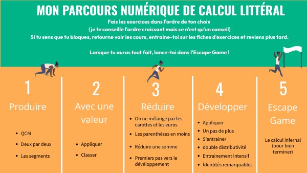 Fais les exercices dans l'ordre de ton choix (je te conseille l'ordre croissant mais ce n'est qu'un conseil) Si tu sens que tu bloques, retourne voir les cours, entraine-toi sur les fiches d'exercices et reviens plus tard. Lorsque tu auras tout fait, lance-toi dans l'Escape Game !