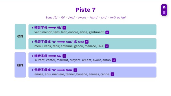 Sons /ɑ̃/ - /õ/ - /wa/ - /wan/ - /wɔn/ - /ɔn/ - /wɛ̃/ et /œ/