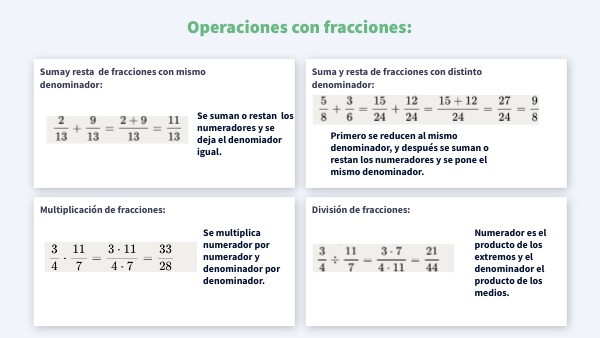 Operaciones con fracciones: